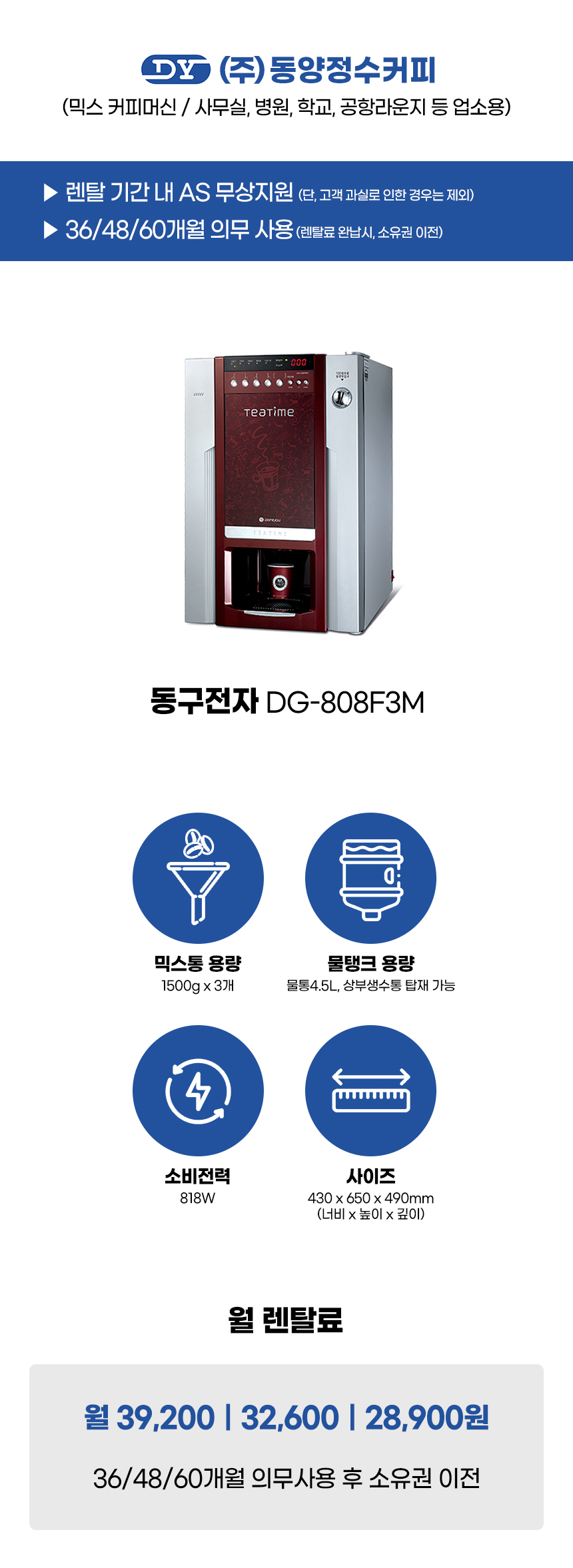 원료통 : 3개(1,500g) 컵수용량 : 65개(6.5oz 기준)