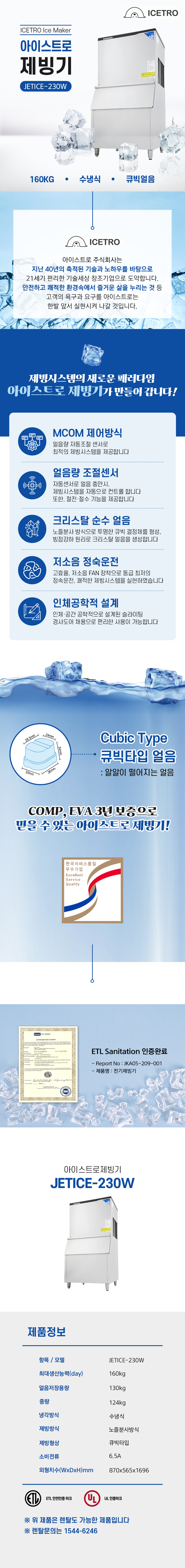 아이스트로 제빙기 수냉식 160kg 큐빅타입