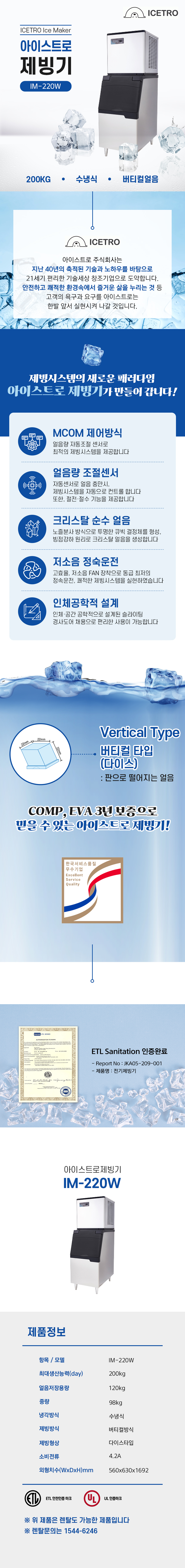 아이스트로 제빙기 수냉식 200kg 버티컬타입(다이스)