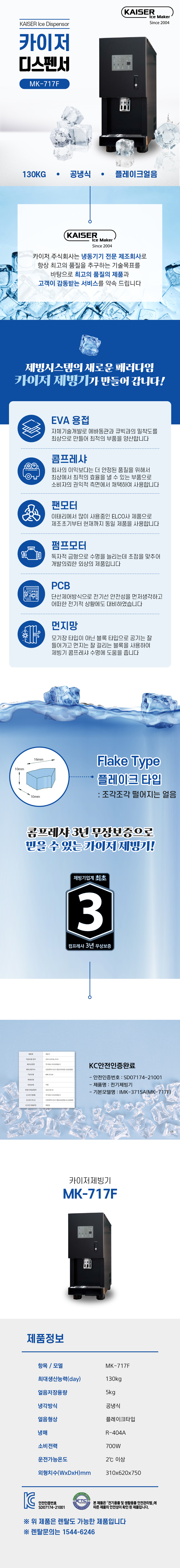 카이저 공냉식 디스펜서형 제빙기 130kg