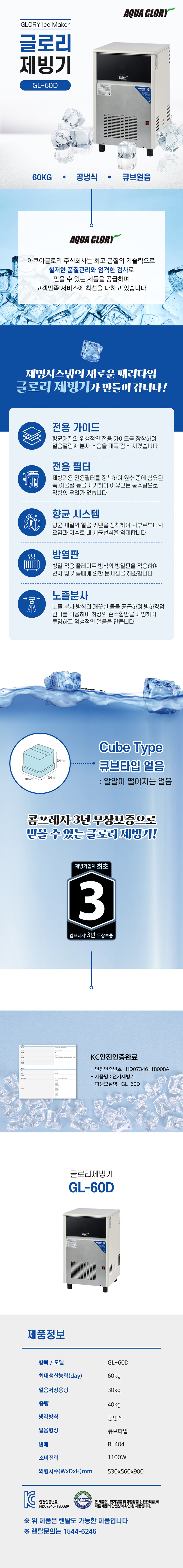 글로리 큐브얼음 제빙기 60kg