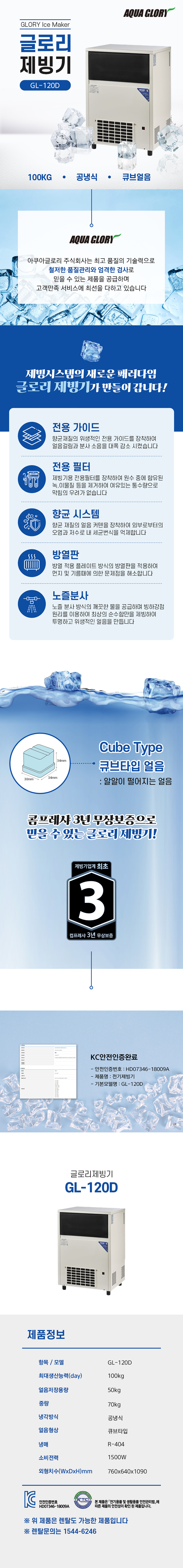 글로리 큐브얼음 제빙기 120kg