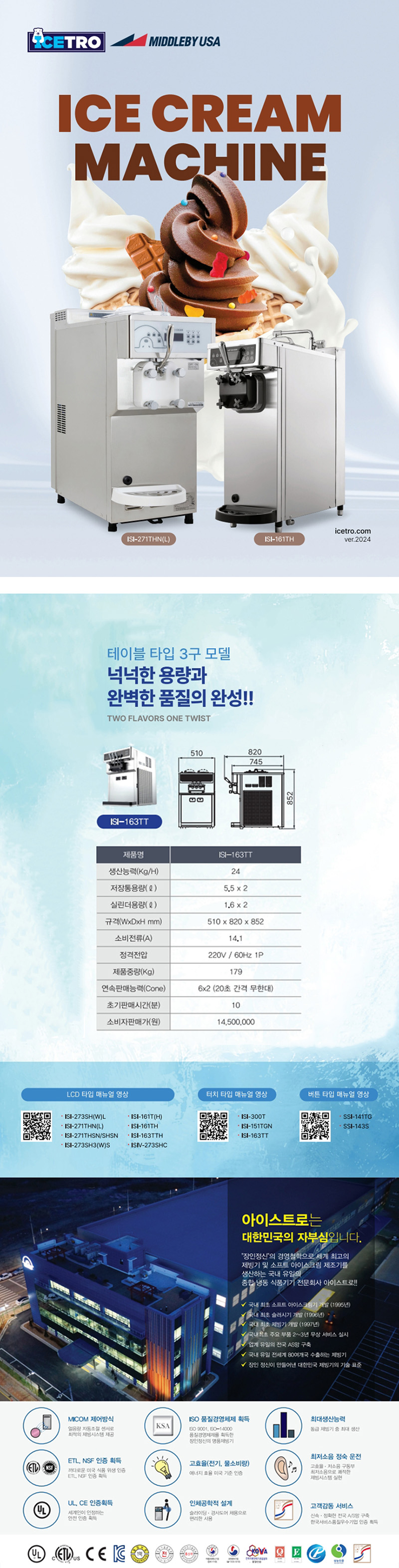 아이스트로 3구 소프트 아이스크림 제조기 ISI-163TT
